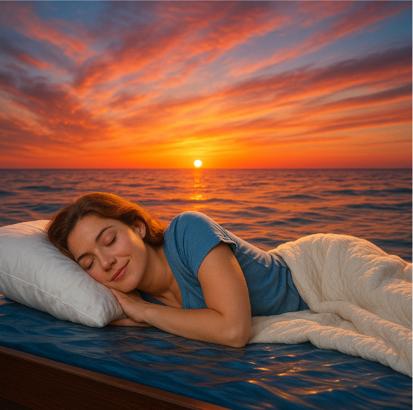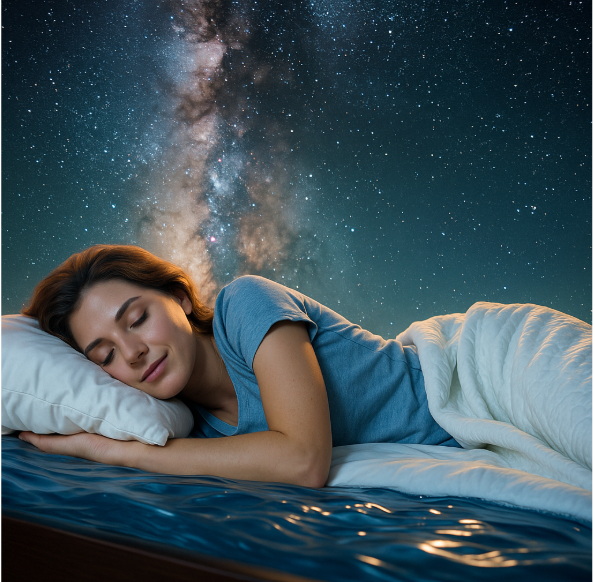 Tatsächlich kann ein Wasserbett mit niedrigerer Temperatur als die Raumtemperatur im Sommer sogar kühlend wirken. Wenn beispielsweise in einer Dachgeschosswohnung die Raumtemperatur auf 30 Grad steigt, wirkt ein auf 26 Grad klimatisiertes Wasserbett angenehm kühlend – im Gegensatz zu einer herkömmlichen Matratze, die sich auf Raumtemperatur aufheizt.